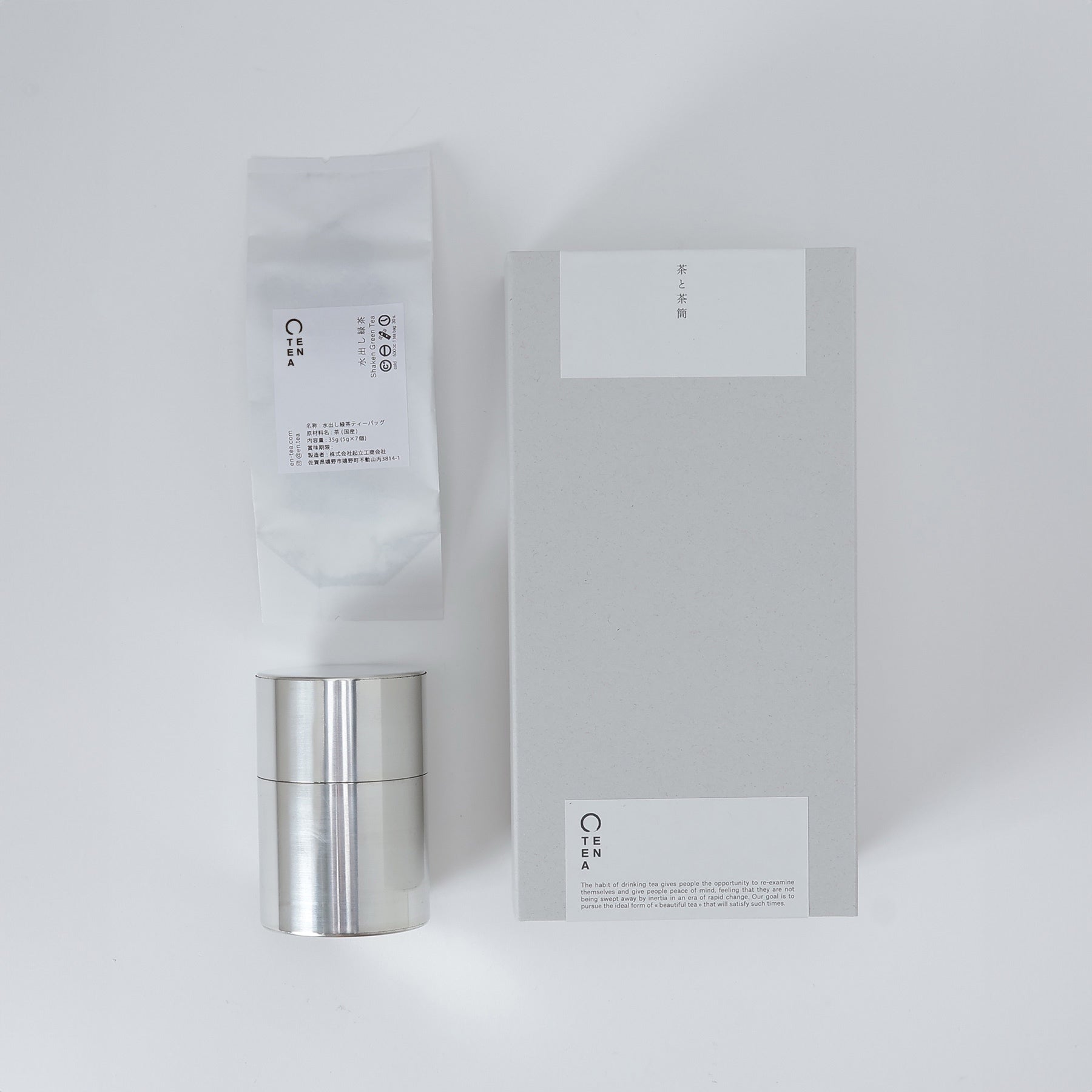 EN TEAの「水出し緑茶ティーバッグ」と開化堂の「茶簡」の化粧箱入セット。