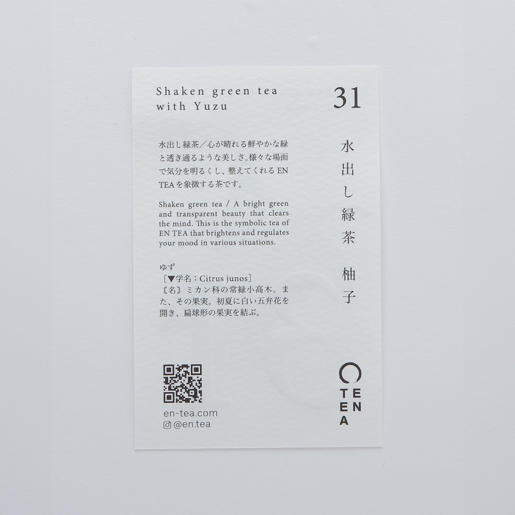 We blend fragrant Japanese green tea with yuzu from Kochi Prefecture, known for its vivid aroma, achieving an ideal balance between the two.