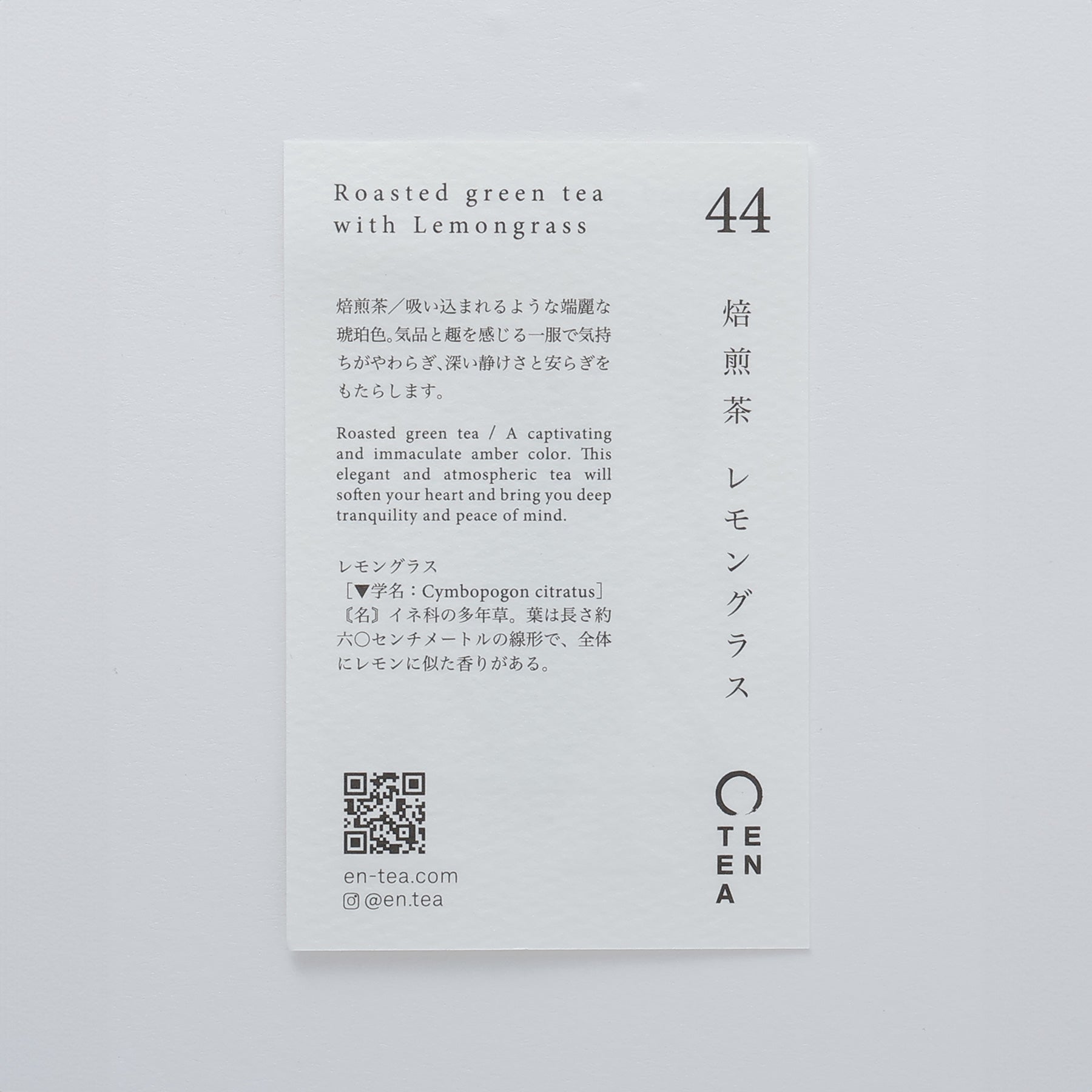 The base tea is a deeply roasted variety that preserves the essence of the tea itself, while the blend features carefully selected lemongrass grown in Saga Prefecture, prized for its refined aroma.
