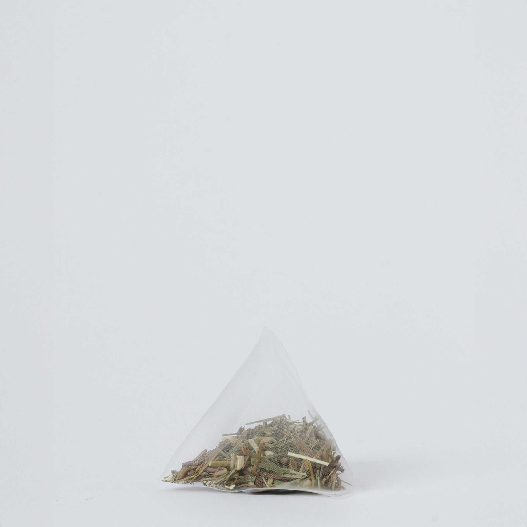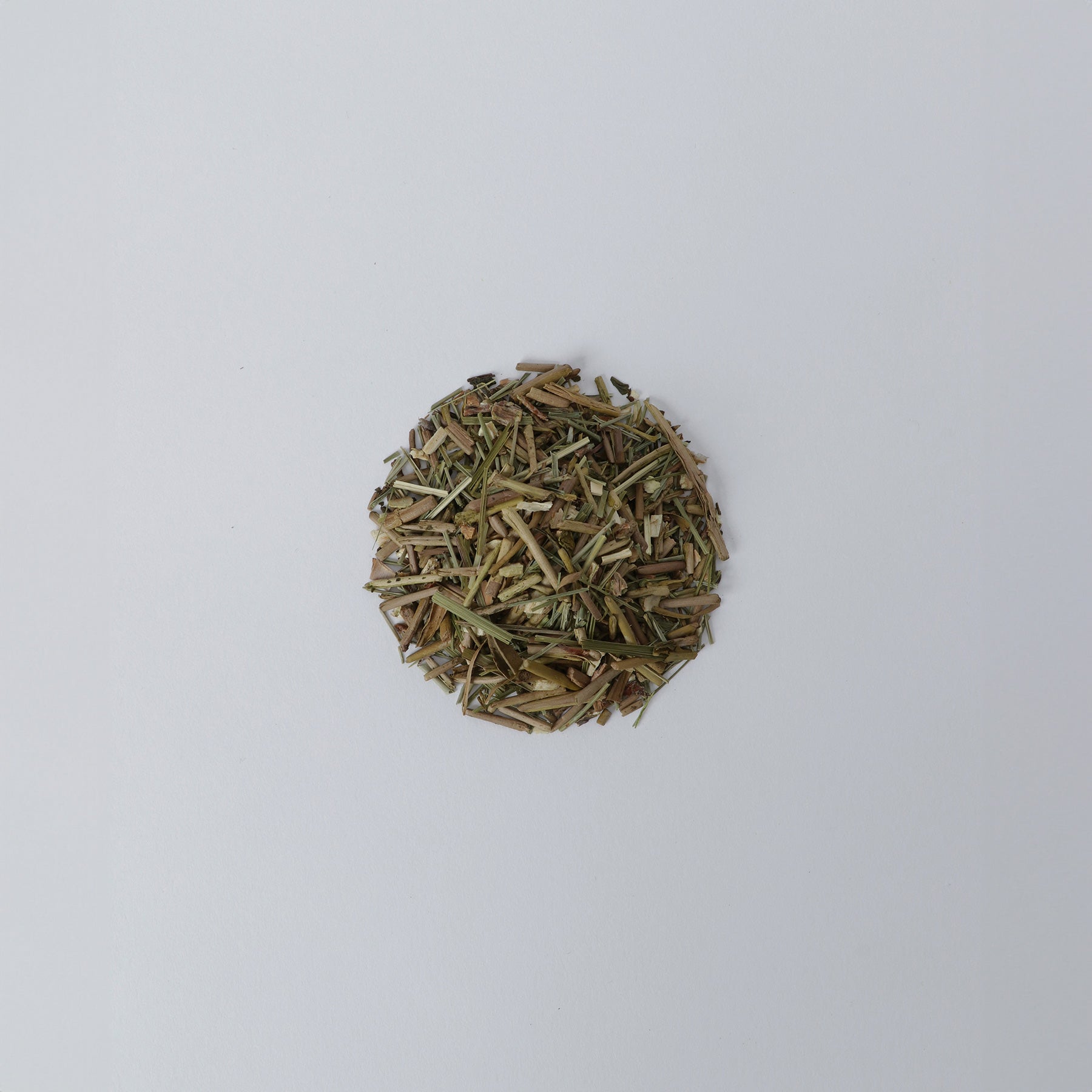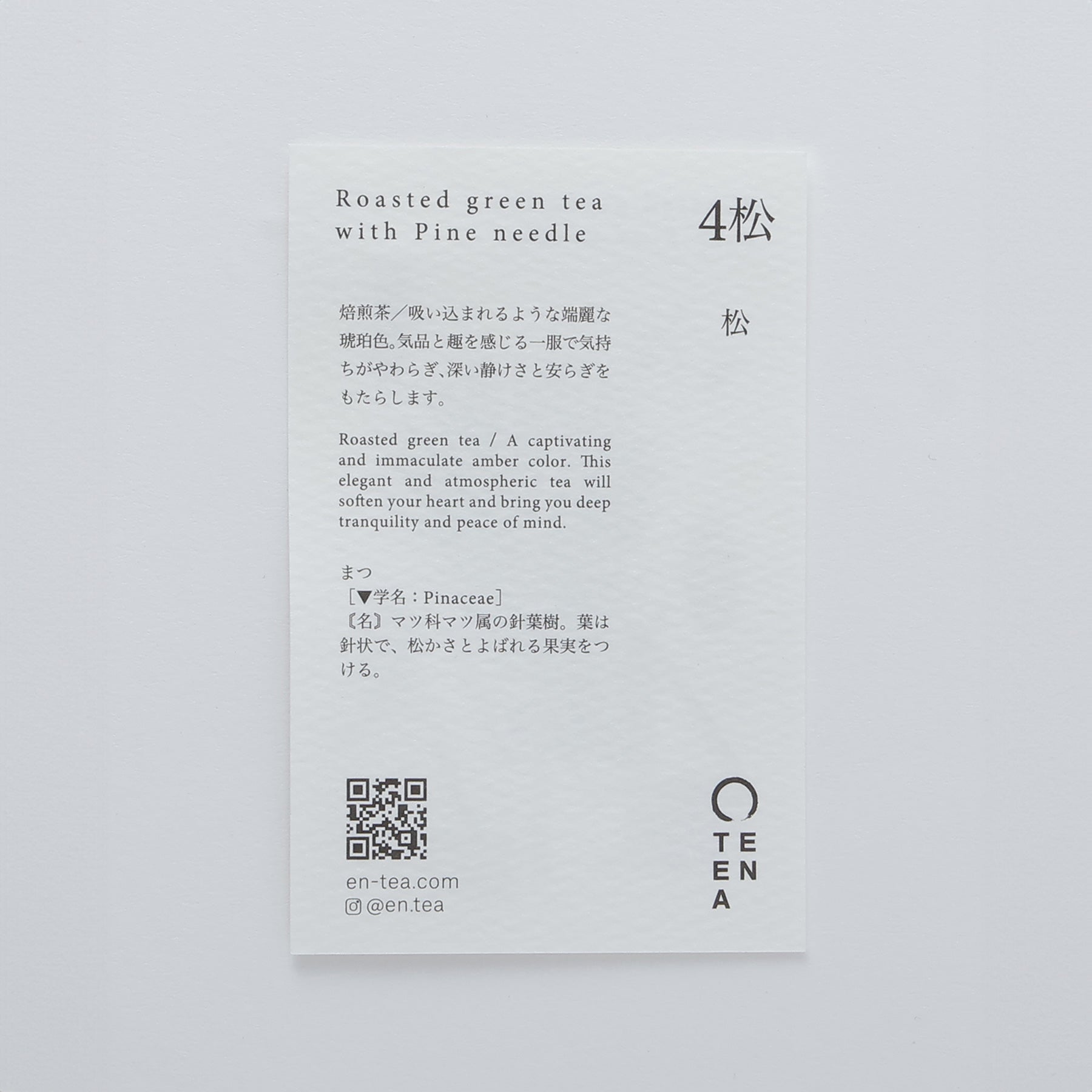 The base tea, with a gentle sweetness and elegant depth, is blended with delicate, sharp pine needle tea and a touch of lemongrass.